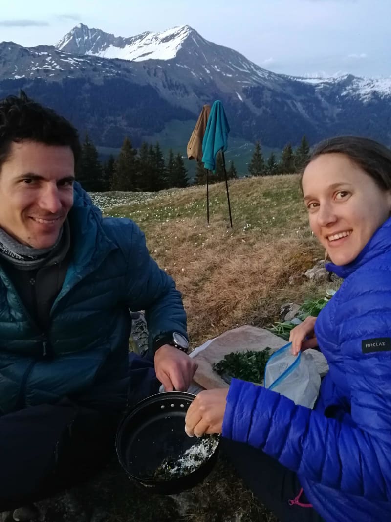 Once we set up camp, we make a fire and prepare a super rich dinner with pleny of wild plants gathered by Vio. She is an avid learner for everything concerning wild plants, permaculture etc. and it shows, she is quietly becoming quite the expert!